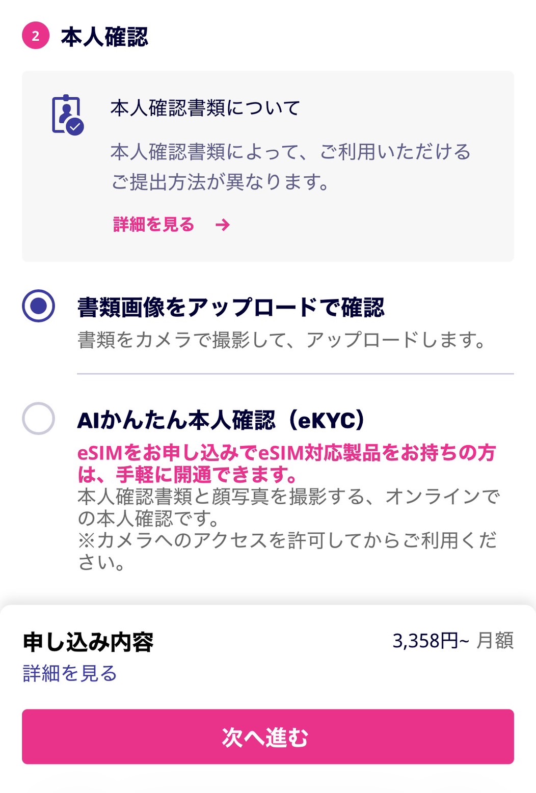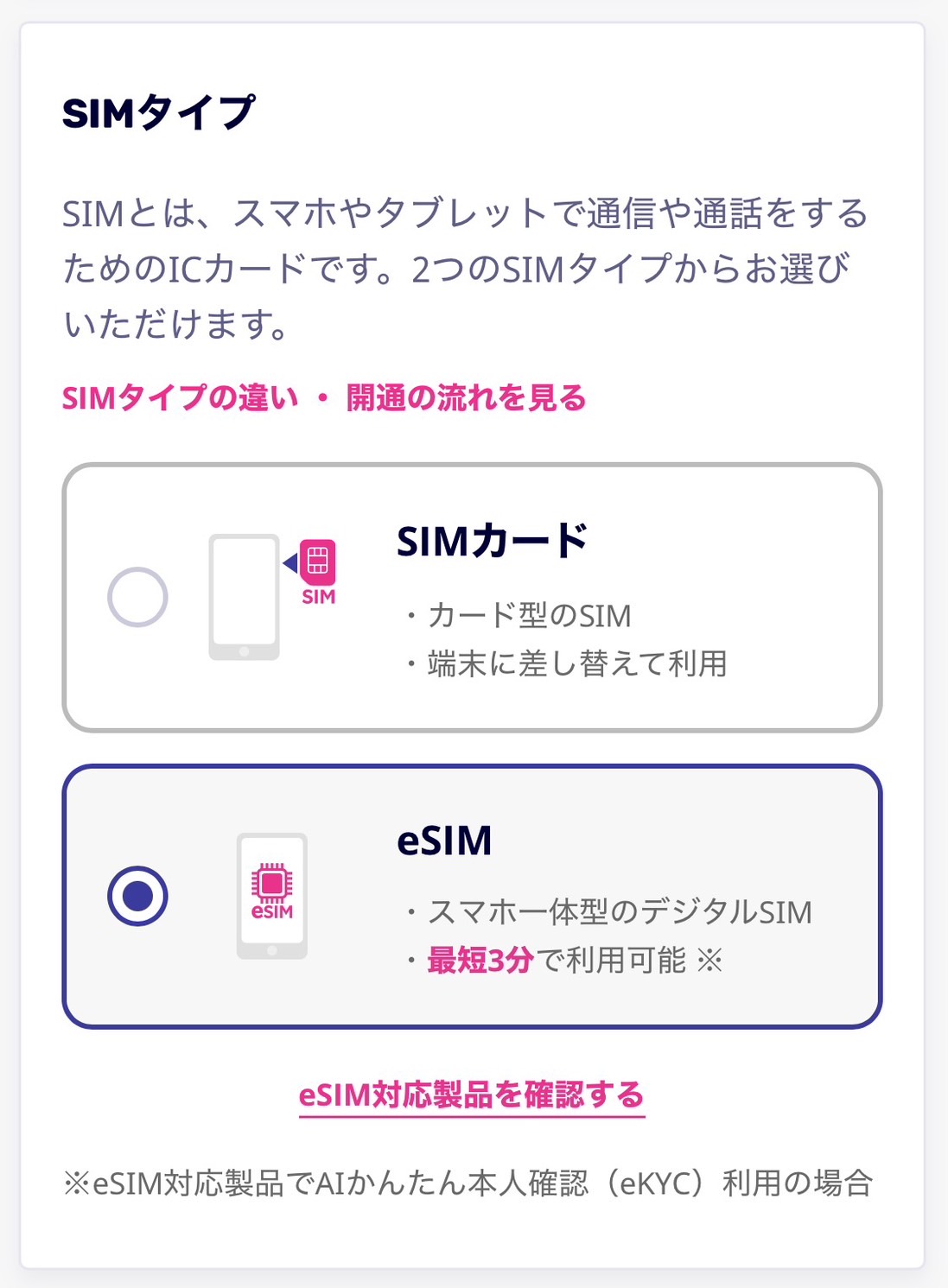 SIMタイプは「eSIM」を選んでね♪