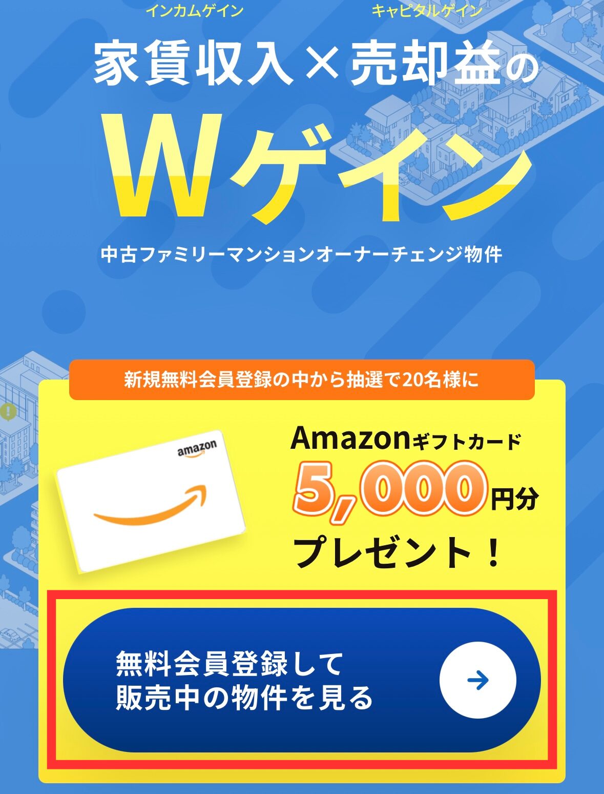 「無料会員登録して販売中の物件を見る」をタップ。