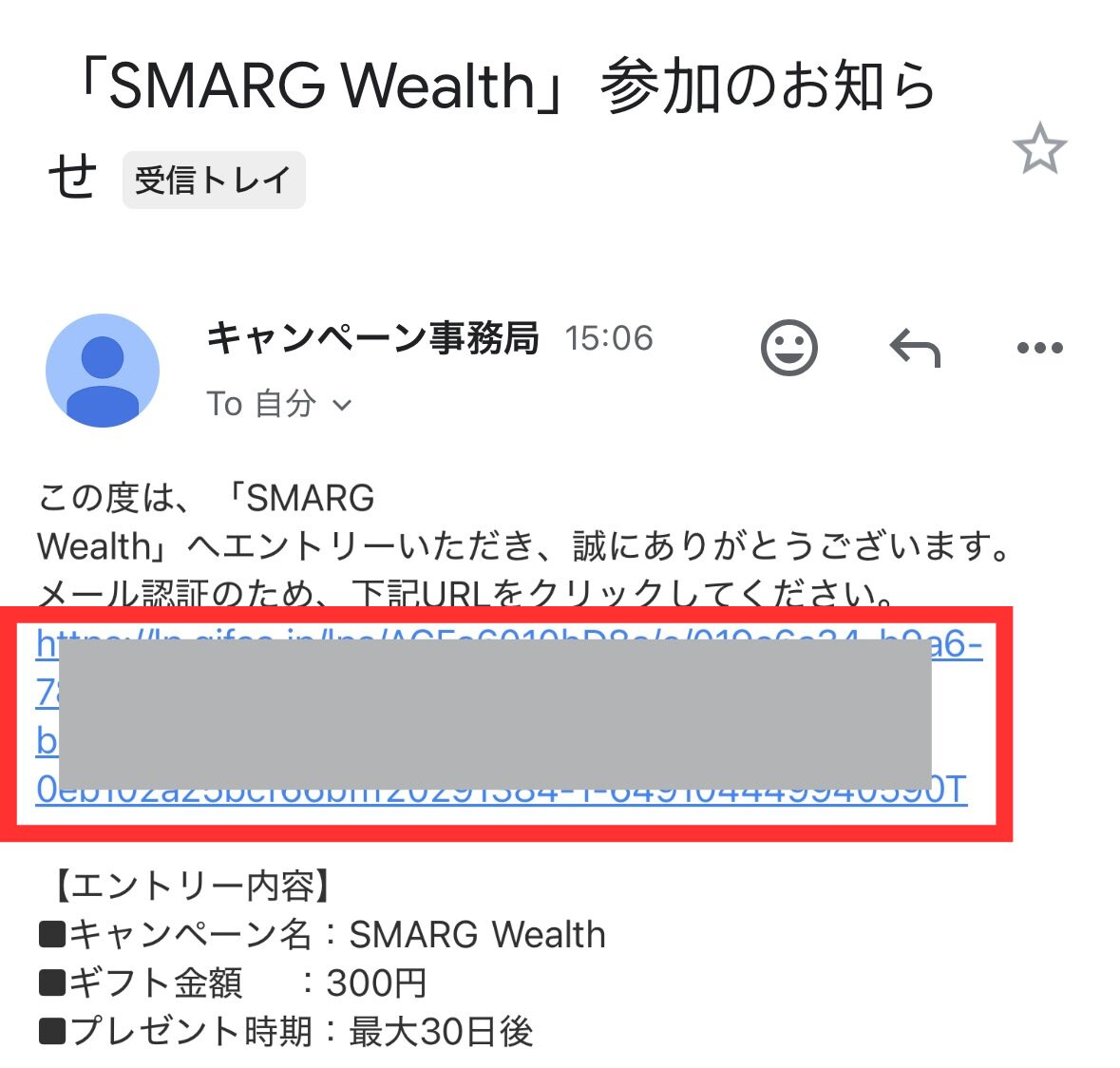 あとはメールアドレスに届いたリンクをタップして…