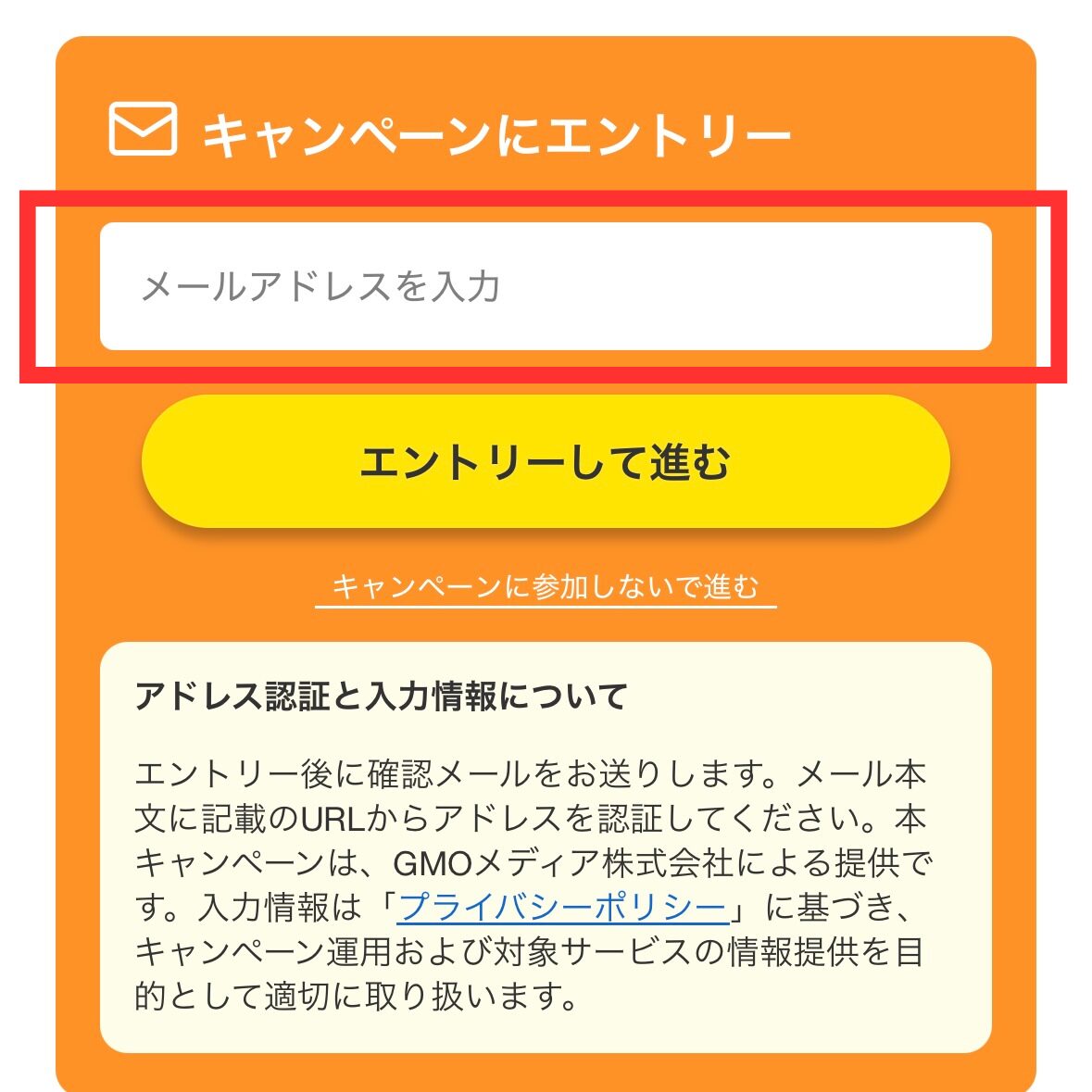 メールアドレスを入力し「エントリーして進む」をタップしてね!