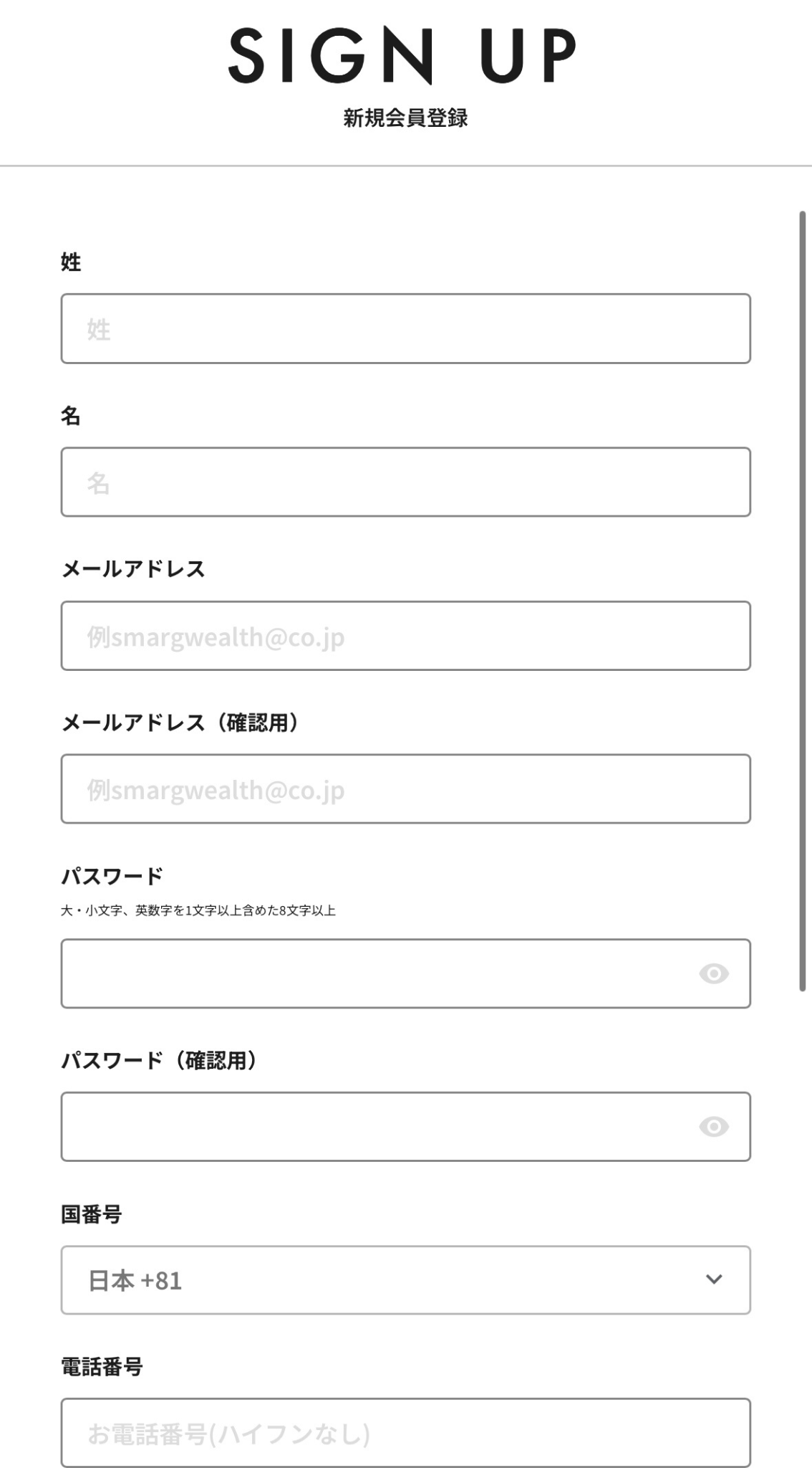 名前やメールアドレス、電話番号あたりを入力していくよ~。